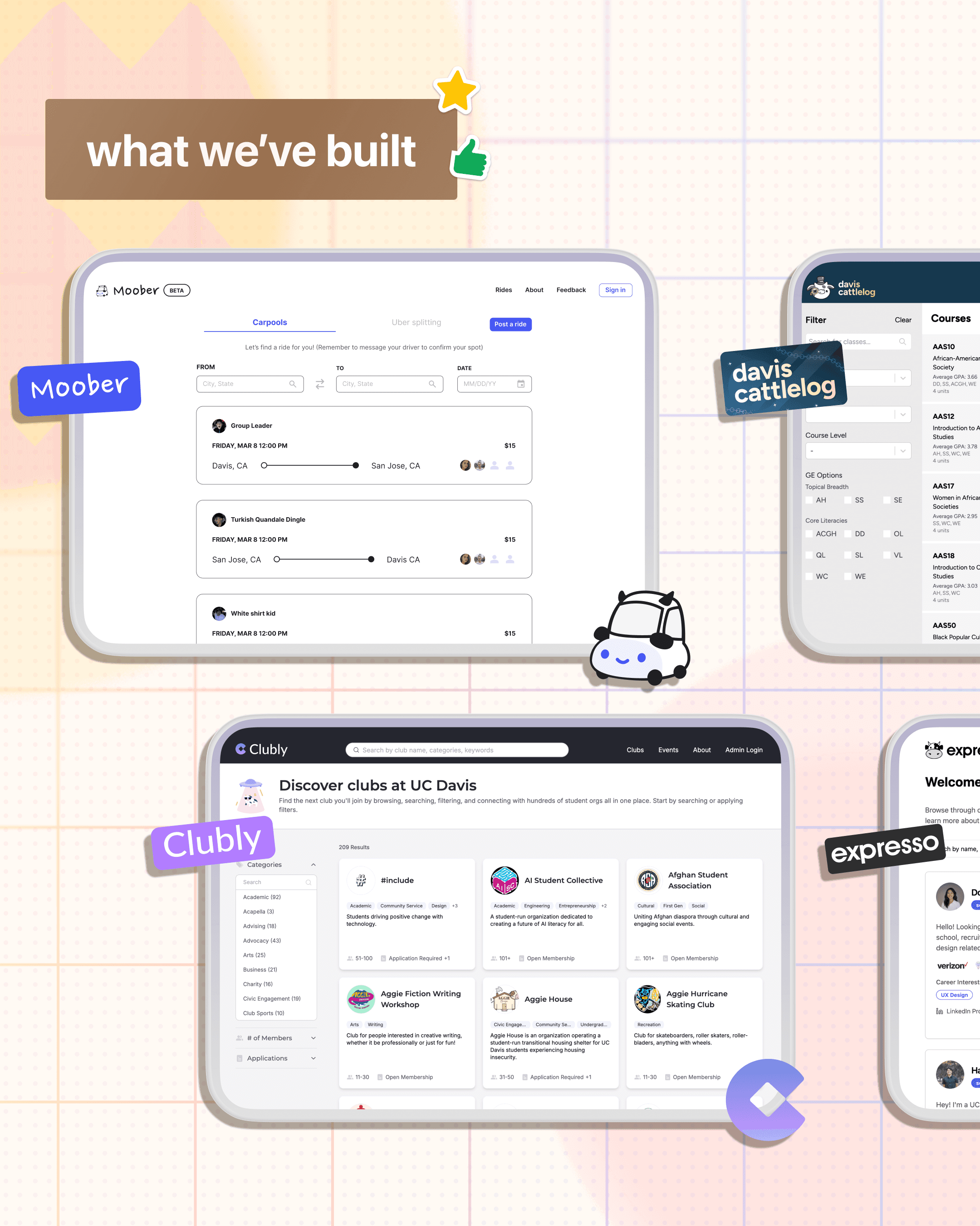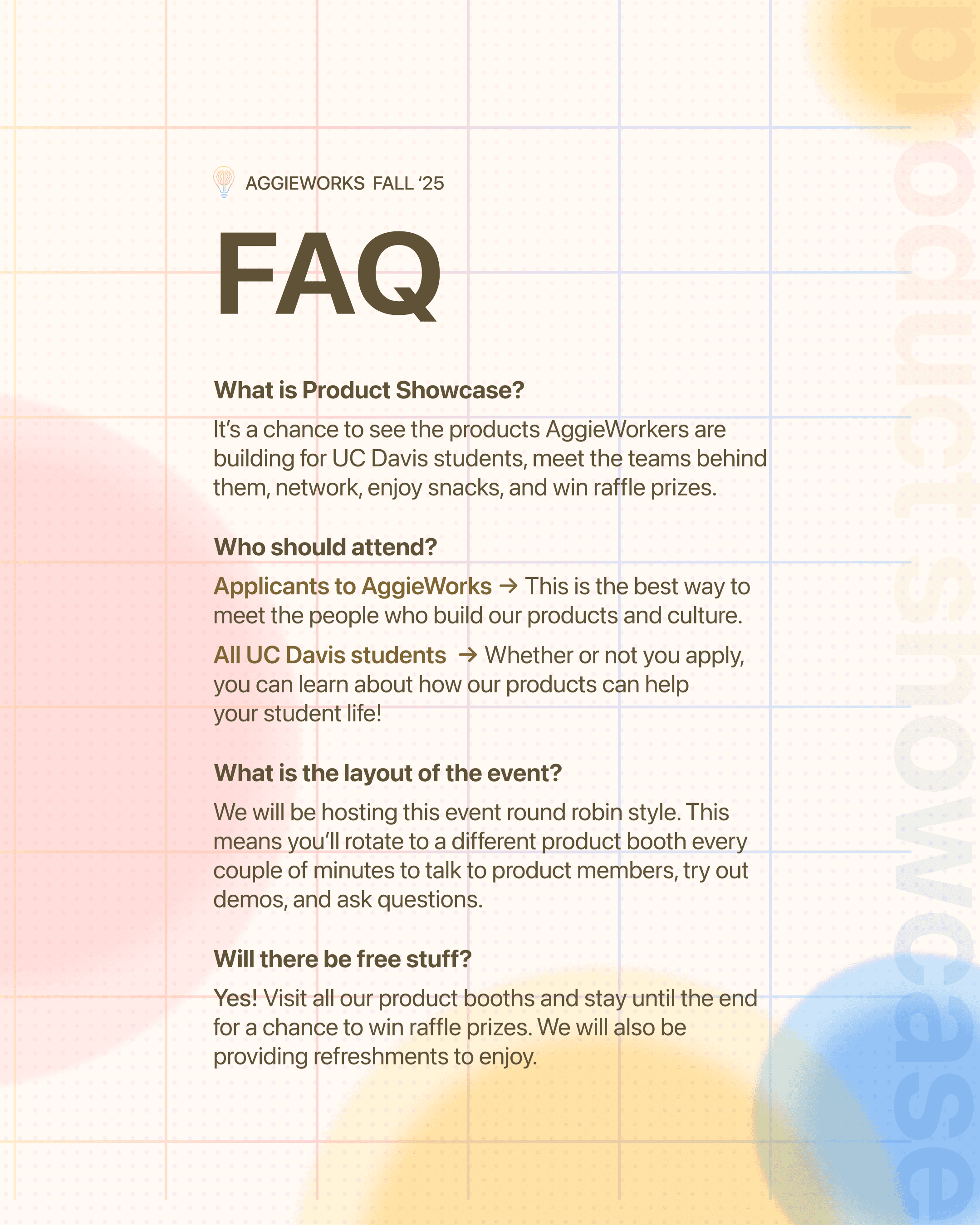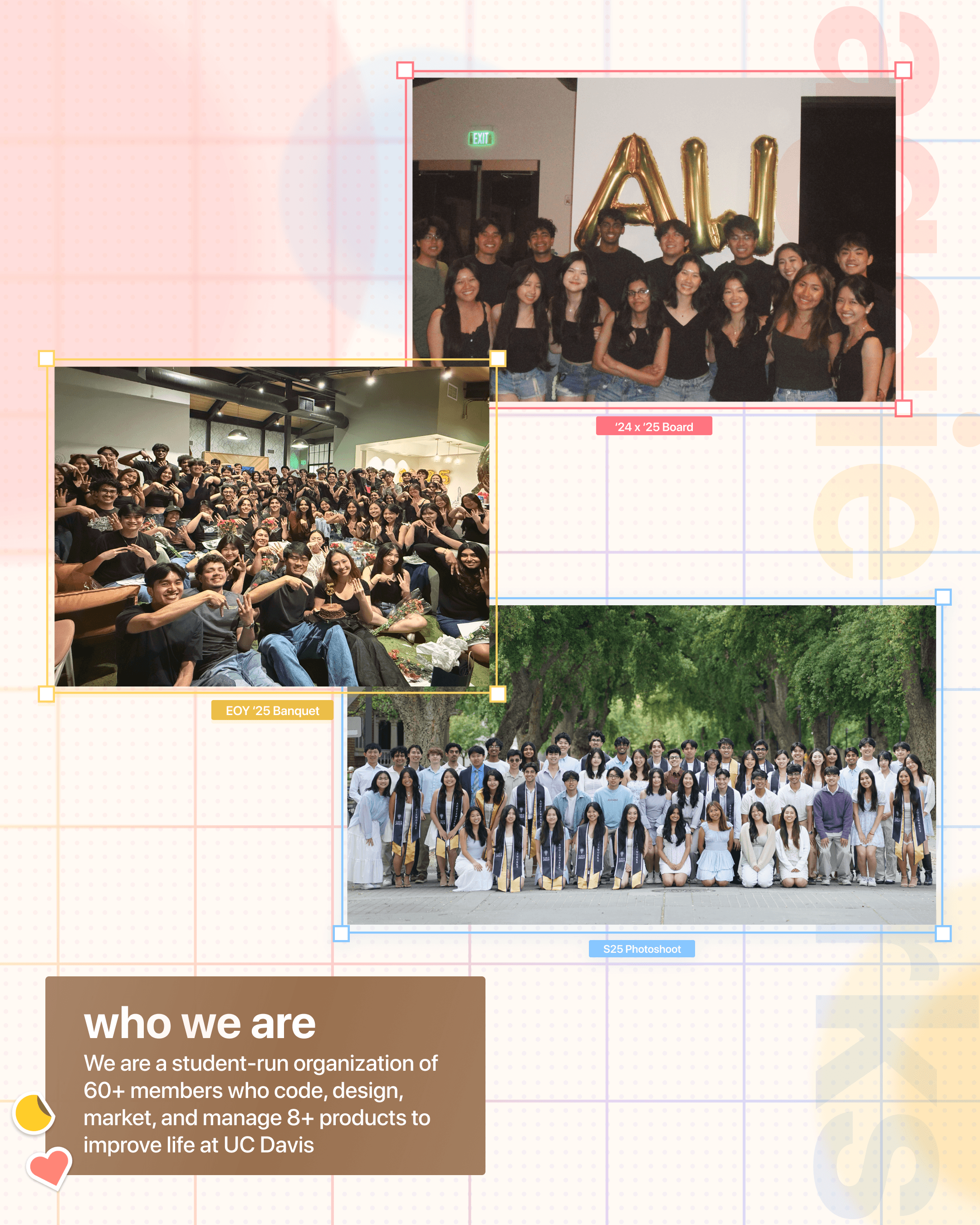 AggieWorks is a student-run product organization at UC Davis dedicated to building software solutions that improve the campus experience.
