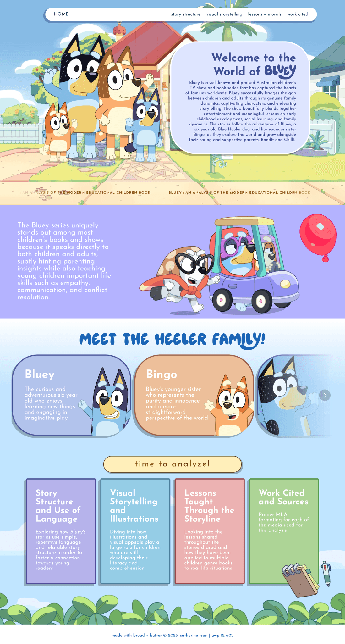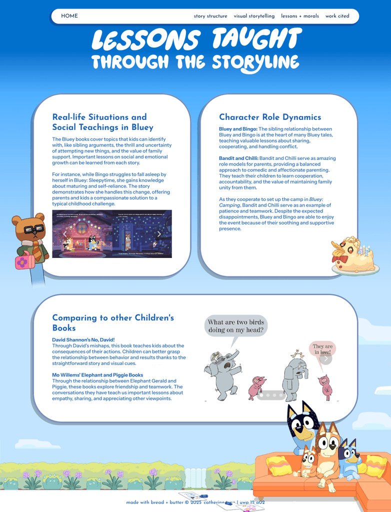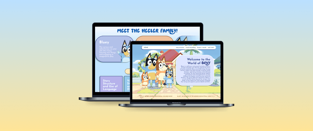 For my Writing and Visual Rhetoric, we were tasked to create a "multimodal" genre based project which allowed me to tap into my creativity through design with an academic purpose. By integrating traditional animated family sitcom elements with contemporary social media marketing strategies, Bluey has successfully appealed to both children and adults. This study explores how the show’s narrative techniques, visual aesthetics, and digital marketing tactics contribute to its broad appeal. The final deliverable will be an interactive website designed using Framer, Figma, and Adobe Photoshop, presenting an in-depth analysis of Bluey’s multimodal success.